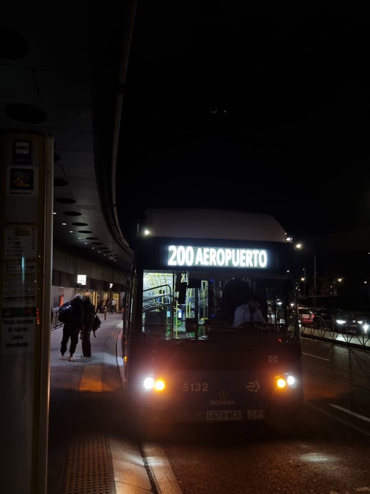 Madrid-Barajas Havaalanı ile Avenida de América (İntercambiador) Ulaşım Kavşağı arasında bağlantı sağlayan mavi otobüsler. T1, T2 ve T4 terminallerindeki otobüs duraklarından biniliyor. Son durak olan Avenida de America’da hiç dışarı çıkmadan alt kata inip 4-6-7 ve 9 numaralı metro hatlarına aktarma yapabilirsiniz. Biz gidişte ve dönüşte bu otobüsü kullandık.
